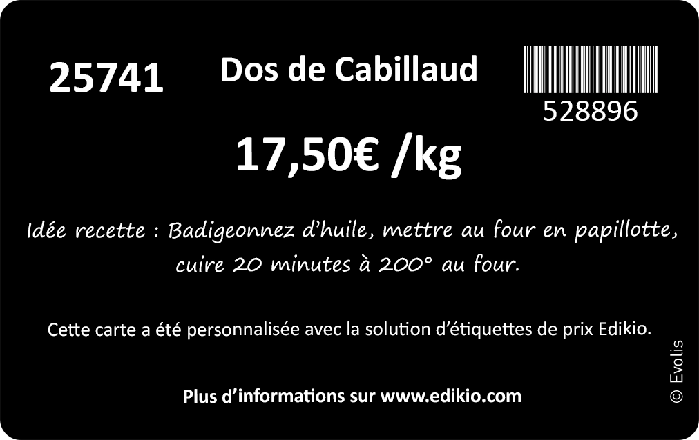 Promuovete i vostri prodotti ittici con etichette di prezzo chiare, resistenti e professionali. Edikio, la soluzione semplice ed elegante.