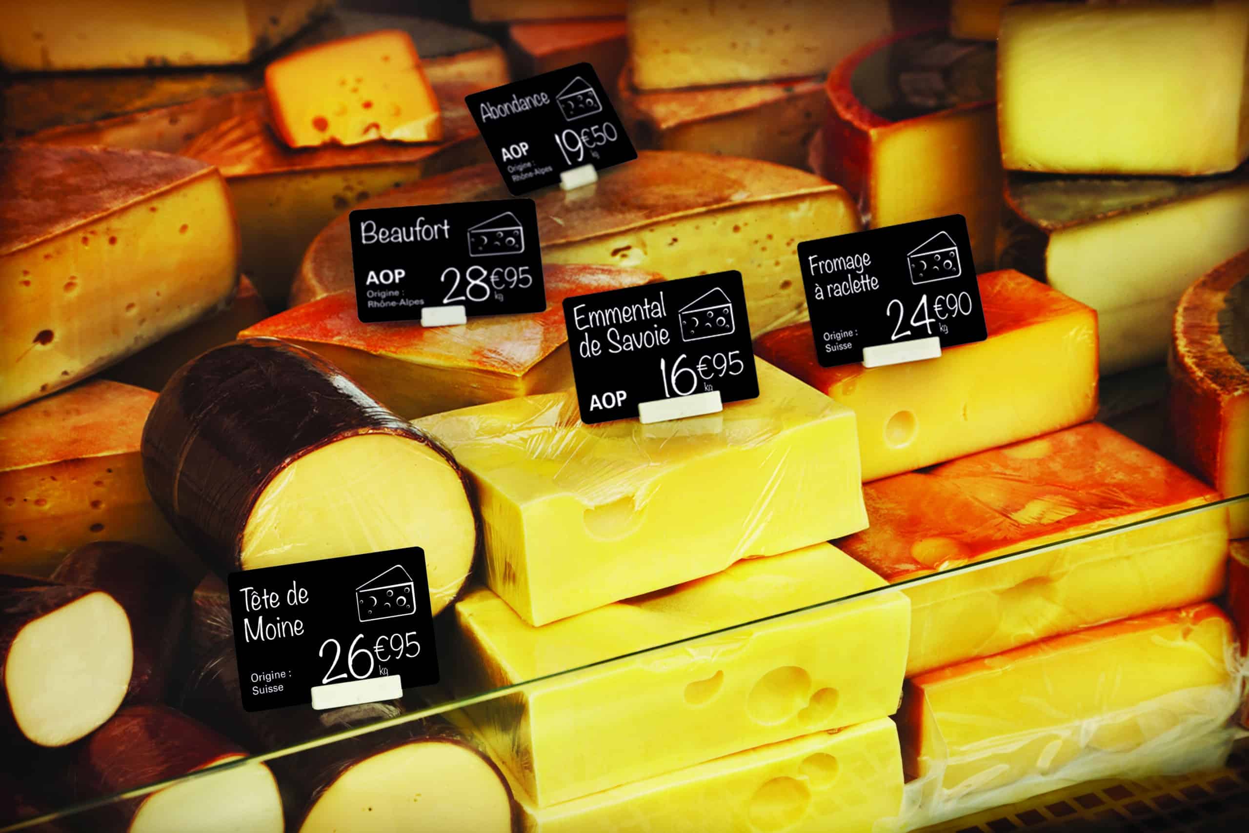 Una segnaletica chiara è un importante strumento di vendita, soprattutto per i clienti che non conoscono le diverse varietà che potete offrire. E se hanno bisogno di una guida, ecco che entrano in gioco le etichette di presentazione. Avete bisogno di indicare il nome, il tipo di formaggio o qualsiasi altra informazione sull’origine dei vostri prodotti? Predisponete un soluzione di etichettatura. Con Edikio Price Tag non c’è bisogno di un Munster per creare le proprie etichette! Sono :