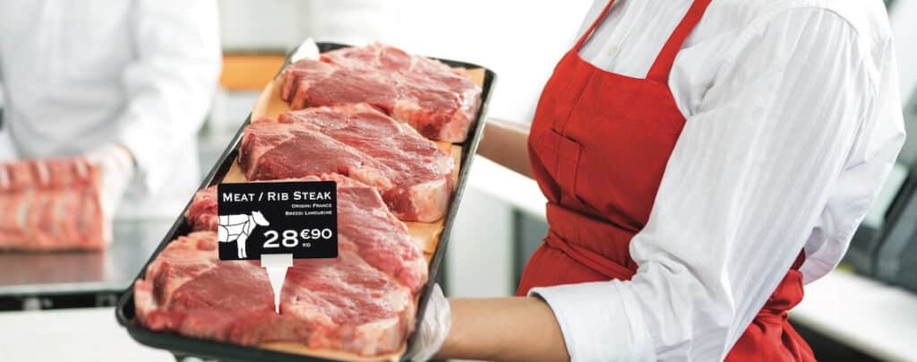 Esistono diversi tipi di cartellini dei prezzi, ma molti supermercati si attengono a modelli semplici che riportano solo il nome e il prezzo dei prodotti. Si tratta di un metodo collaudato che funziona in tutti i tipi di ambienti di vendita al dettaglio ed è particolarmente efficace per attirare gli acquirenti attenti ai prezzi.