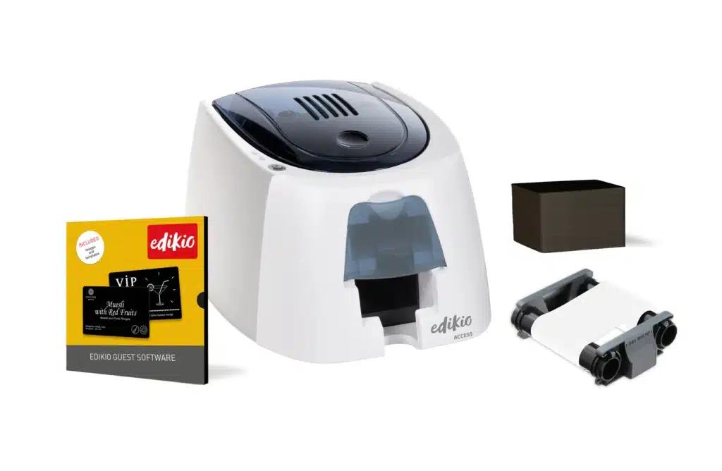 Edikio Access Guest è la soluzione all-in-one più conveniente per creare e stampare le tue etichette prezzo su carte PVC. Ideale per piccole quantità di etichette con stampa fronte singolo. La soluzione Edikio Access Guest include tutto il necessario per iniziare a stampare subito: