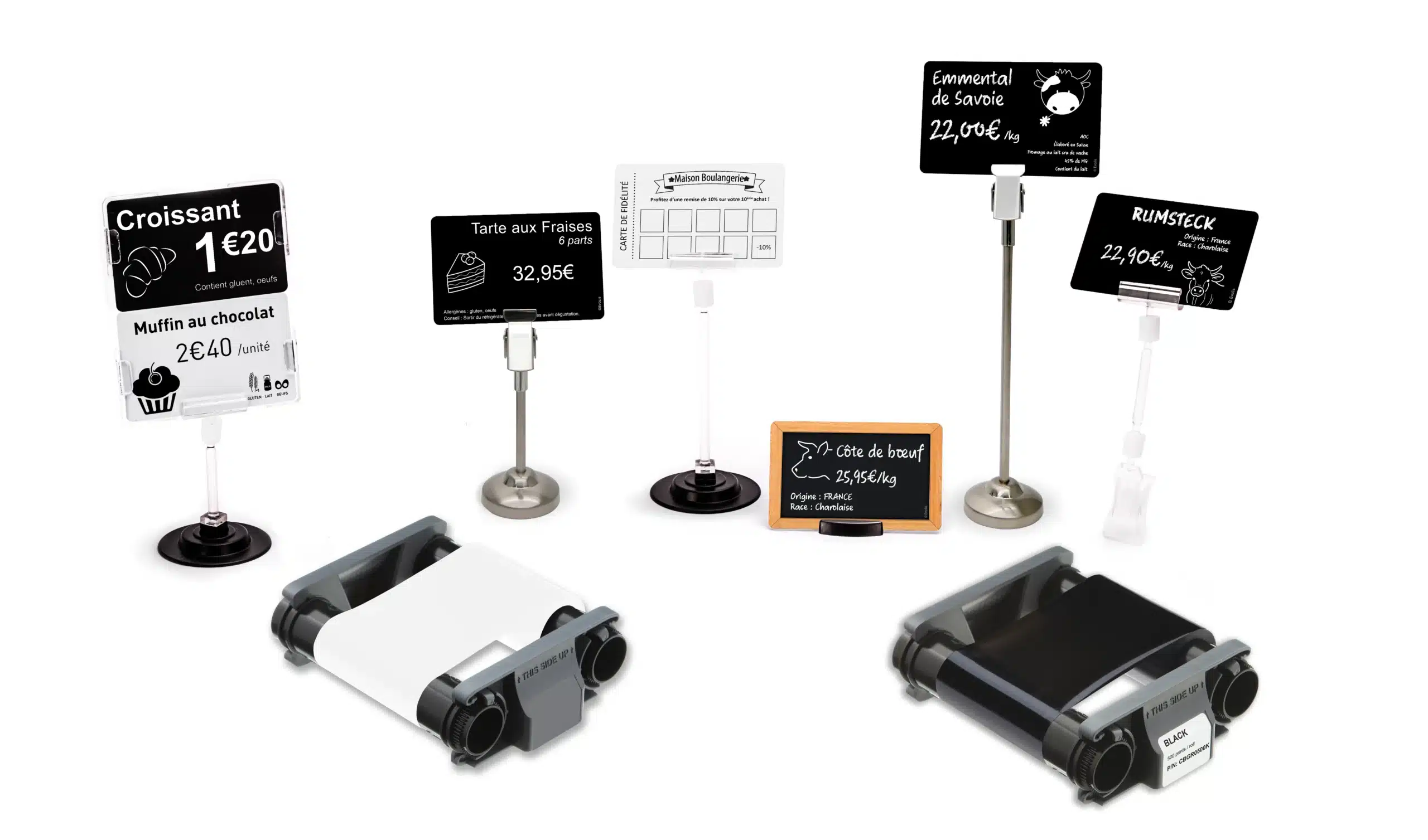 Numerose combinazioni di etichette prezzo sono possibili grazie alla nostra gamma completa di cartoncini e nastri