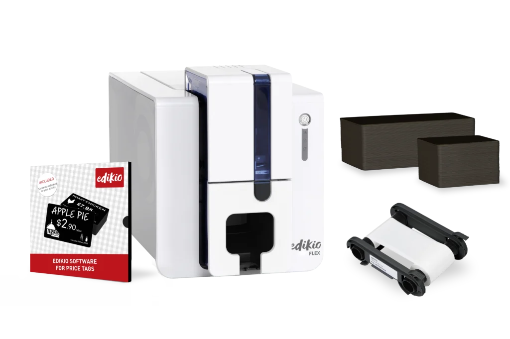 Questa soluzione all-in-one si adatta perfettamente a esigenze di visualizzazione diverse. Con Edikio Flex, puoi creare e stampare cartellini prezzo su carte in PVC in formato standard (tipo carta di credito) oppure in formato lungo.