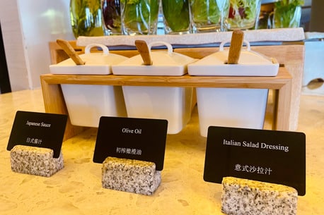 Il Portman Ritz-Carlton utilizza etichette personalizzate per esporre i cibi nel Portman Restaurant e nell’Executive Lounge, entrambi dotati di buffet. Le etichette comprendono cartellini personalizzati e stampati per indicare i prezzi dei pasti e della merce nel Ritz Bar & Lounge, nelle sale da tè e nei negozi di souvenir.