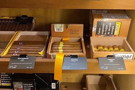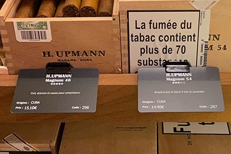 Etichette dei prezzi adatte alla cantina dei sigari del negozio “Le Cigare et la Plume”